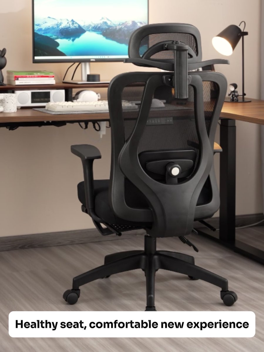 Het verstelbare zitvlak en de armleuningen maken het mogelijk om de stoel precies af te stellen zoals ik wil. De mesh-materiaal ademt goed, zelfs na uren zitten blijft het comfortabel zonder zweterig gevoel.