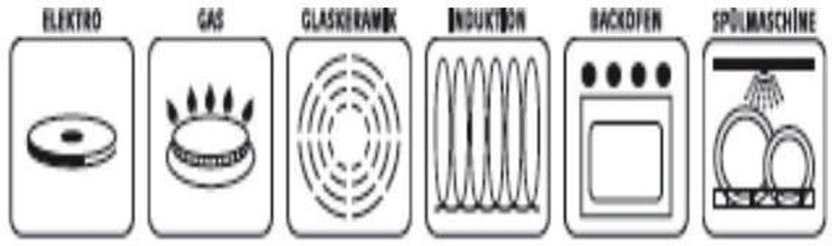Compatibel met alle branders inclusief inductie — breed inzetbaar (bron: listing, checked 2025) | Handgrepen en details over hitte-isolatie zijn niet gespecificeerd (Not specified) |
