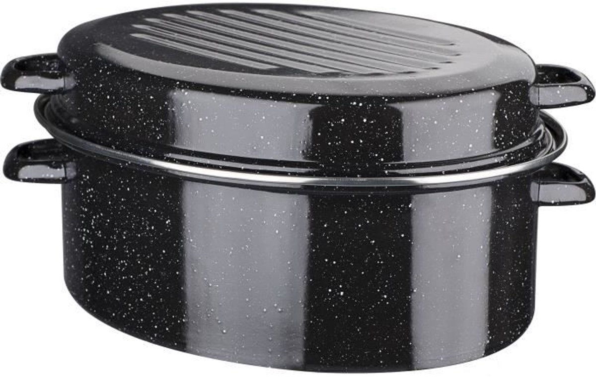 Gegroefd deksel houdt vocht vast voor sappigere gerechten (bron: listing, checked 2025) | Emaille kan bij stoten of ruwe behandeling beschadigen — algemene kwetsbaarheid van emailleoplossingen |