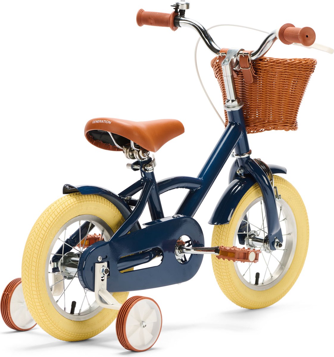 De Generation Classic 12 inch Blauw is een charmante, klassieke kinderfiets voor jonge ontdekkers van ongeveer 2 tot 4 jaar, met een stevig stalen frame, zijwieltjes en een rotan mandje. Hij is ontworpen om veilig en zorgeloos te leren fietsen, met zowel een terugtraprem als een handrem, antislip pedalen en reflectoren in de pedalen voor extra zichtbaarheid.