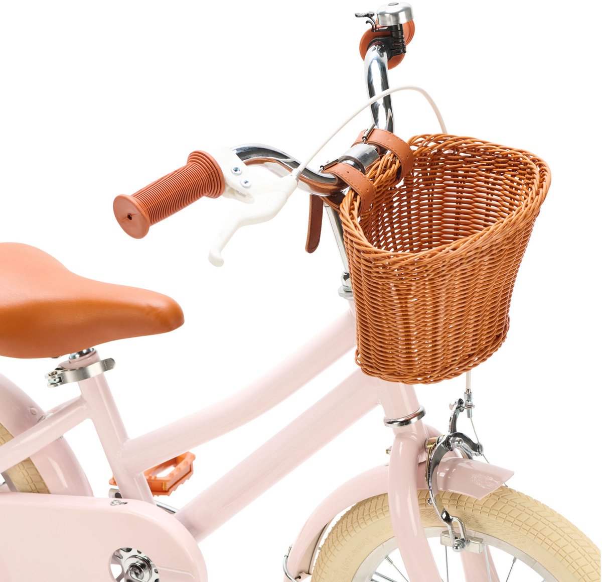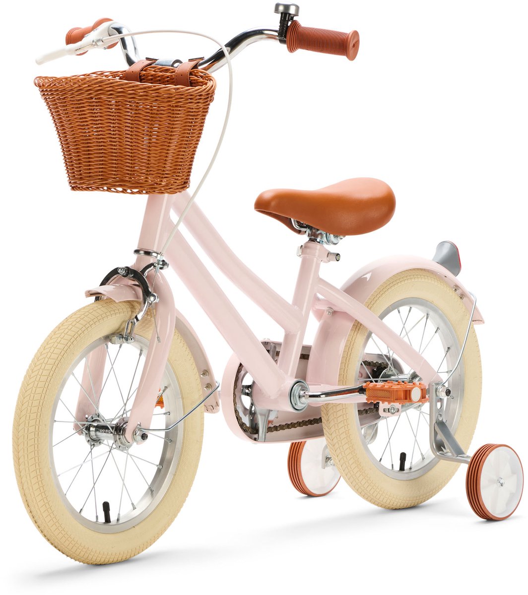 - Je een roze kinderfiets met tijdloze uitstraling en bruine details mooi vindt.