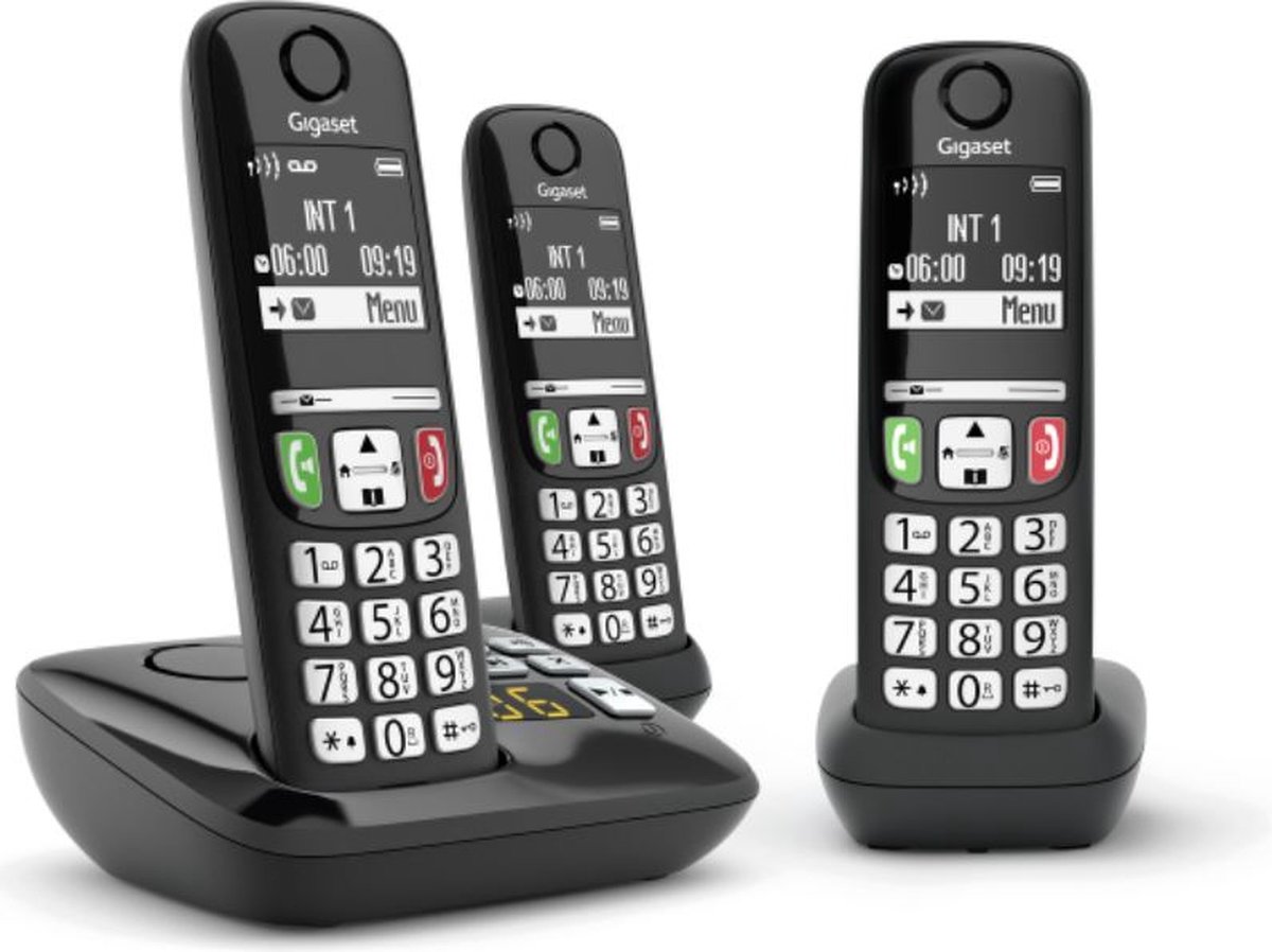 De Gigaset A735A Trio is een compacte draadloze telefoonset met drie toestellen: één basisstation en twee losse handsets. De set richt zich op huishoudens die bereikbaar willen zijn in meerdere kamers zonder te hoeven investeren in losse extra telefoons. Met basisfuncties als een intern telefoonboek, verlichte toetsen en een overzichtelijke belgeschiedenis is het een praktische keuze voor wie eenvoud boven extra’s stelt.