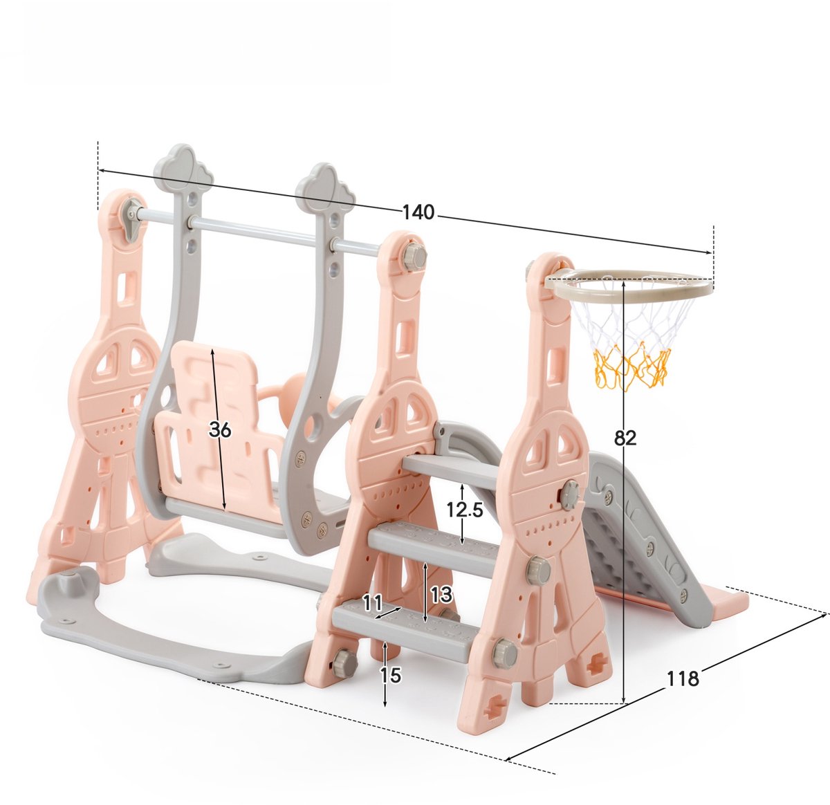 Overzicht:Multifunctioneel speeltoestel dat glijbaan, verstelbare schommel en basketbalring in één compact ontwerp combineert, ideaal voor Nederlandse gezinnen met beperkte ruimte. Met afmetingen van 140x118x102 cm biedt het toestel veelzijdig speelplezier binnen en in de tuin.