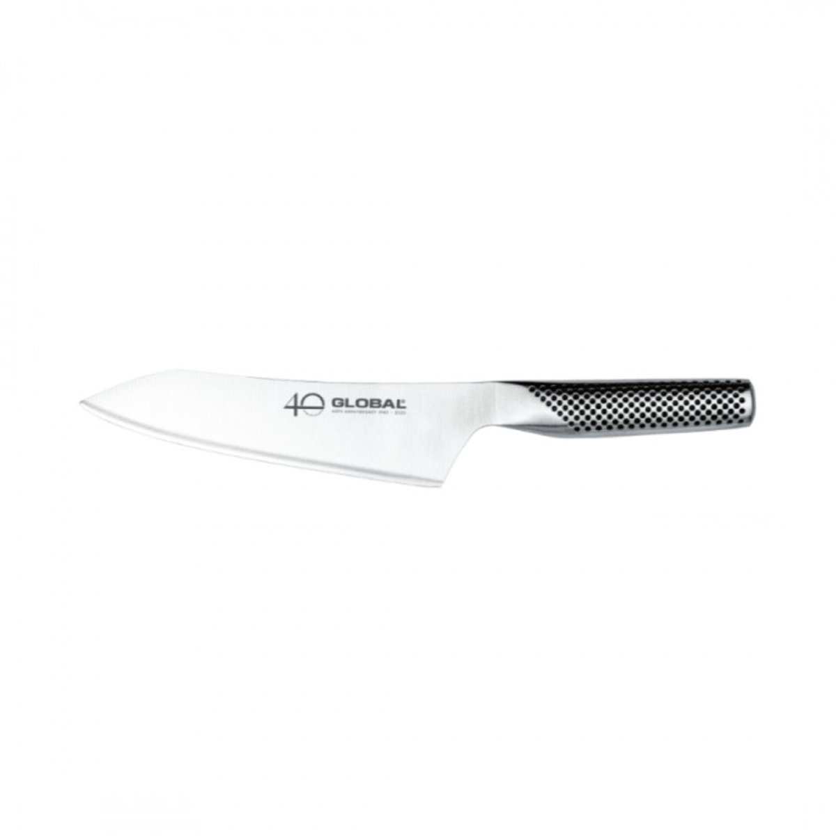Overzicht:Het Oriental 18cm Limited Edition mes van Global viert het 40-jarig jubileum en is perfect voor Nederlandse koks die precisie en balans waarderen. Het 18 cm lemmet is vervaardigd van CROMOVA 18 roestvrij staal voor scherpe, duurzame sneden.