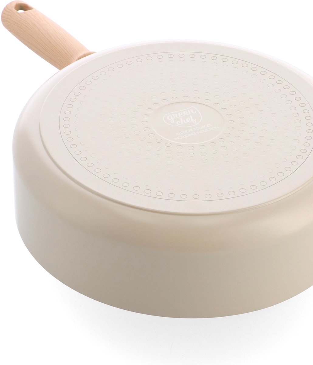 De GreenChef Nordics hapjespan is een stijlvolle, crèmekleurige pan met deksel, ontworpen voor dagelijks gebruik in de moderne keuken. Hij combineert een PFAS-vrije keramische anti-aanbaklaag met een houtlook handgreep en een constructie die geschikt is voor alle warmtebronnen, inclusief inductie.