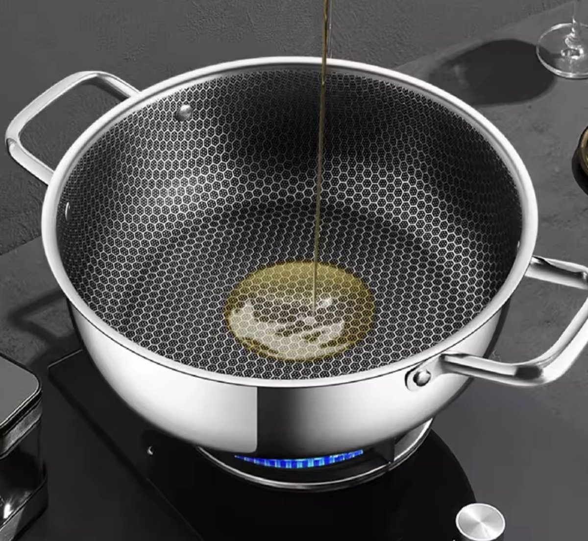 De honingraatstructuur combineert het beste van twee werelden: je kookt op een roestvrijstalen oppervlak dat bestand is tegen intensief gebruik, terwijl de tussenliggende zones met anti-aanbaklaag het risico op vastplakken beperken. In de praktijk merk je dat bij delicate bereidingen, zoals het bakken van eieren, visfilets of pannenkoeken, de kans op aanbakken afneemt en je minder vet nodig hebt. Tegelijk kun je vlees mooi dichtschroeien, omdat het stalen raster robuust genoeg is voor hoge temperaturen.