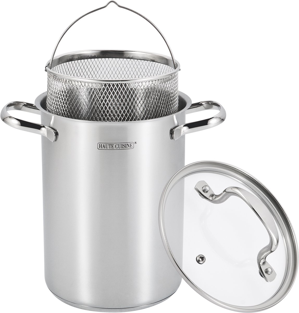 Overzicht:Deze Haute Cuisine pastapan is een praktische, multifunctionele pan voor Nederlandse thuiskoks, ideaal voor gezinsmaaltijden. Met een royale inhoud van 5,6 liter, roestvrijstalen inzetmand en glazen deksel met stoomgaatje bereid je veilig grote porties pasta en groenten.