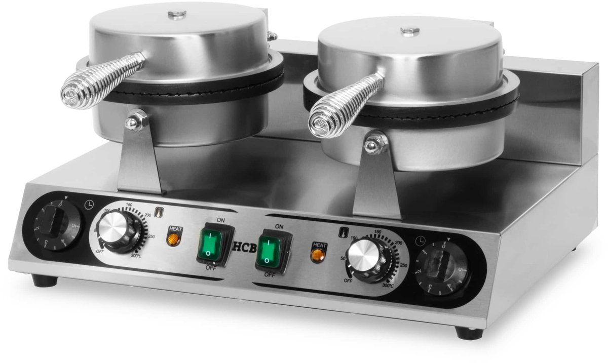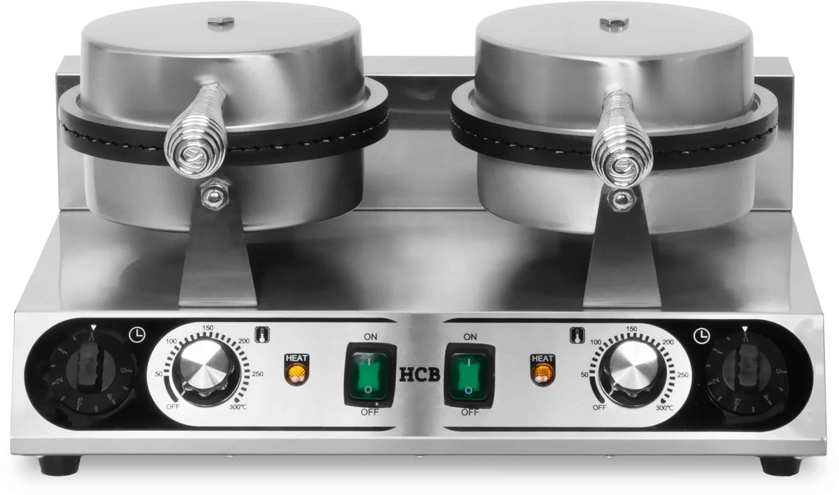 HCB® – Professioneel dubbel horeca wafelijzer test 2 tegelijk RVS