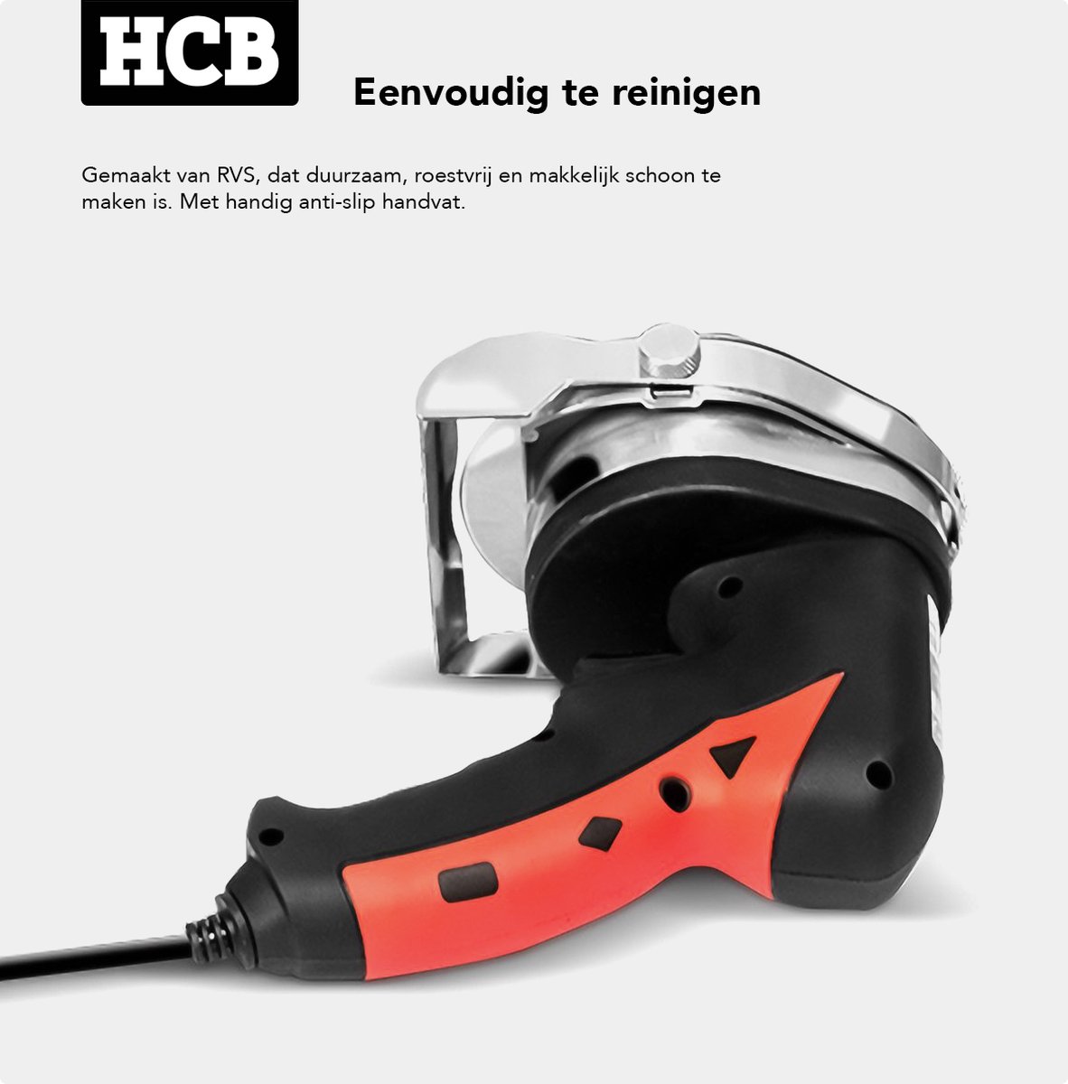 De ergonomische greep met antisliplaag geeft vertrouwen. Zeker bij vettige omstandigheden blijft het handvat stevig in de hand liggen. De aan/uit‑schakelaar is goed bereikbaar, zodat je direct kunt stoppen wanneer dat nodig is. In de praktijk verhoogt dit de controle, verkleint het de kans op misstappen en maakt het de leercurve voor nieuwe medewerkers korter. Minder vermoeidheid, meer precisie.