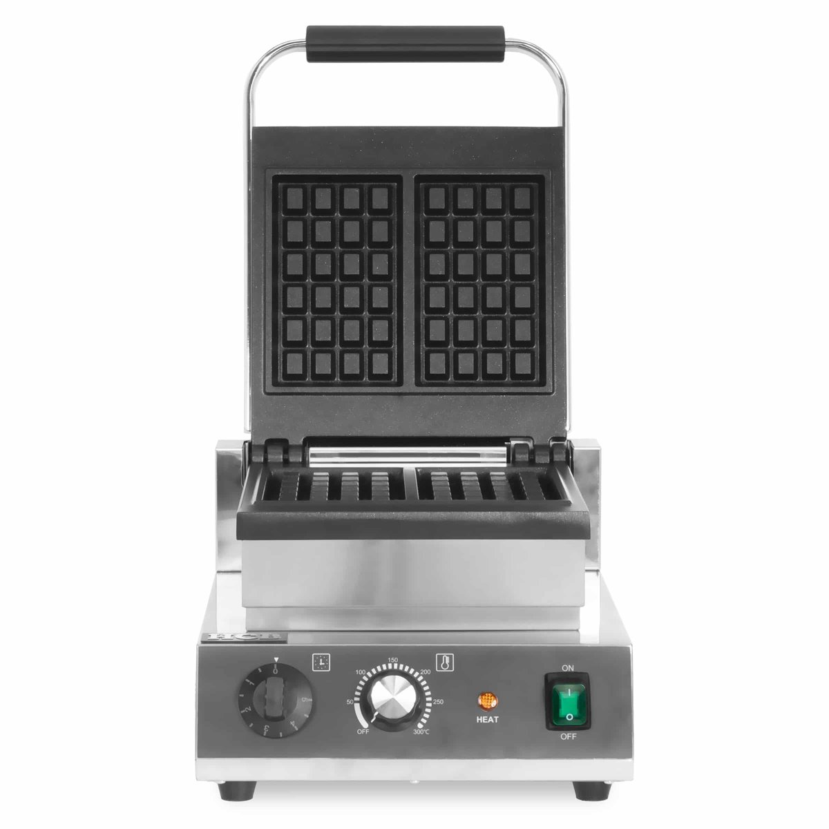De temperatuur is traploos in te stellen met een draaiknop. Daardoor kunt u het bakproces afstemmen op receptuur en voorkeur: een iets lagere stand voor lichtere wafels of een hogere stand voor extra karamellisering van de suiker. Voor consistente resultaten tussen verschillende medewerkers is dit essentieel. U spreekt eenvoudig een vaste instelling af voor uw huisrecept, en iedereen kan die volgen.