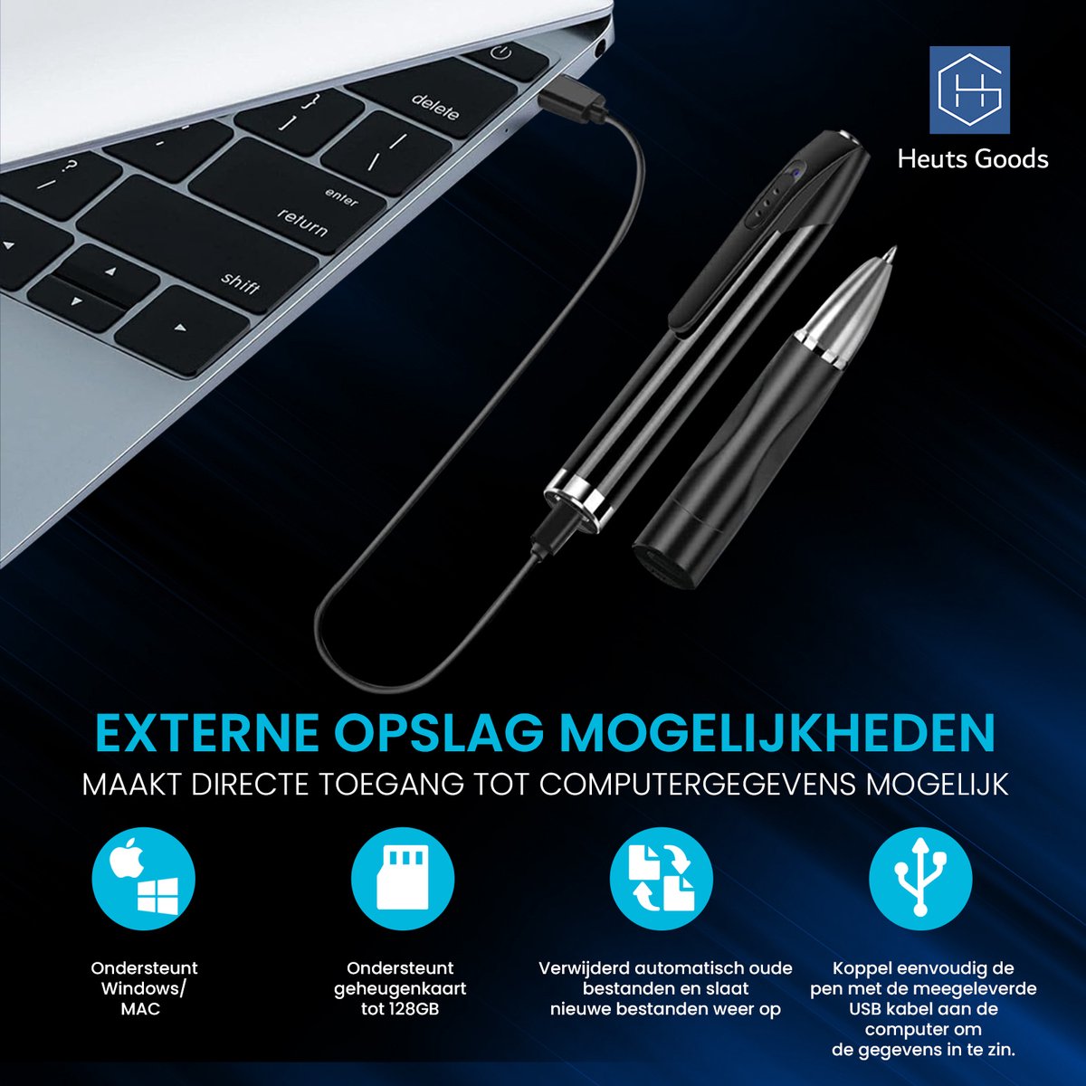 Praktisch voordeel: je kunt meerdere opnames bewaren zonder de pen tussentijds op te schonen, mits je investeert in een geschikte microSD-kaart.