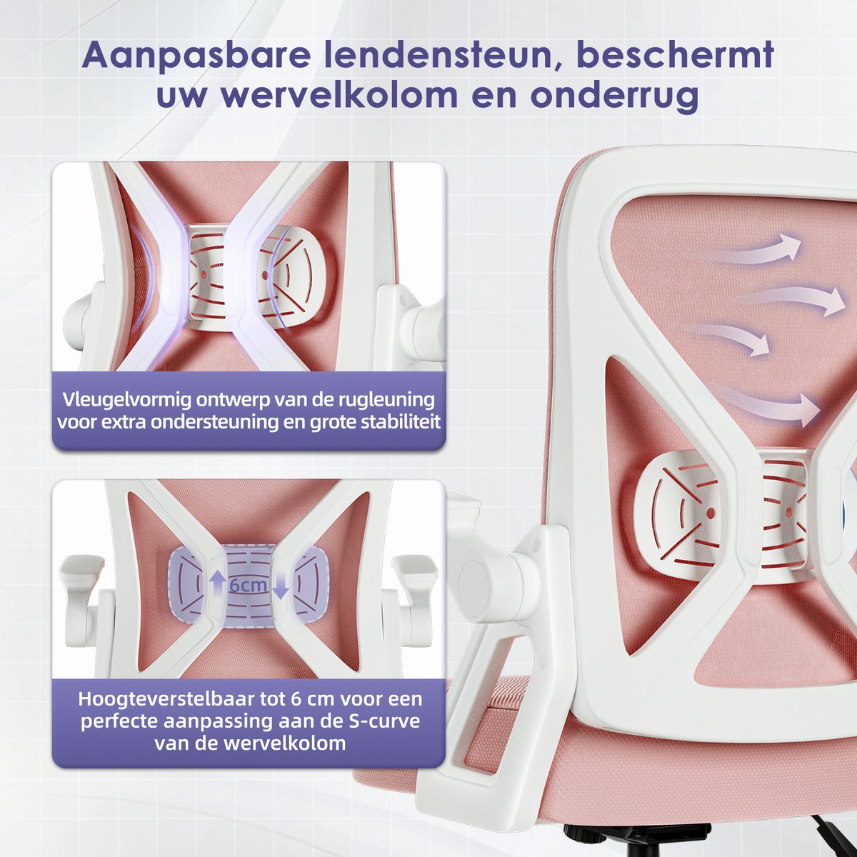 De rugleuning heeft een nieuw ontworpen, in hoogte verstelbare lendensteun met ongeveer 6 cm verstelmogelijkheid. Dit zorgt voor gerichte ondersteuning van het onderruggebied en helpt een naturelle houding te behouden tijdens langere werkperiodes. Waar dit helpt: bij rugklachten of bij gebruikers die extra ondersteuning in het lendengebied nodig hebben tijdens lange vergaderingen of studiesessies.
