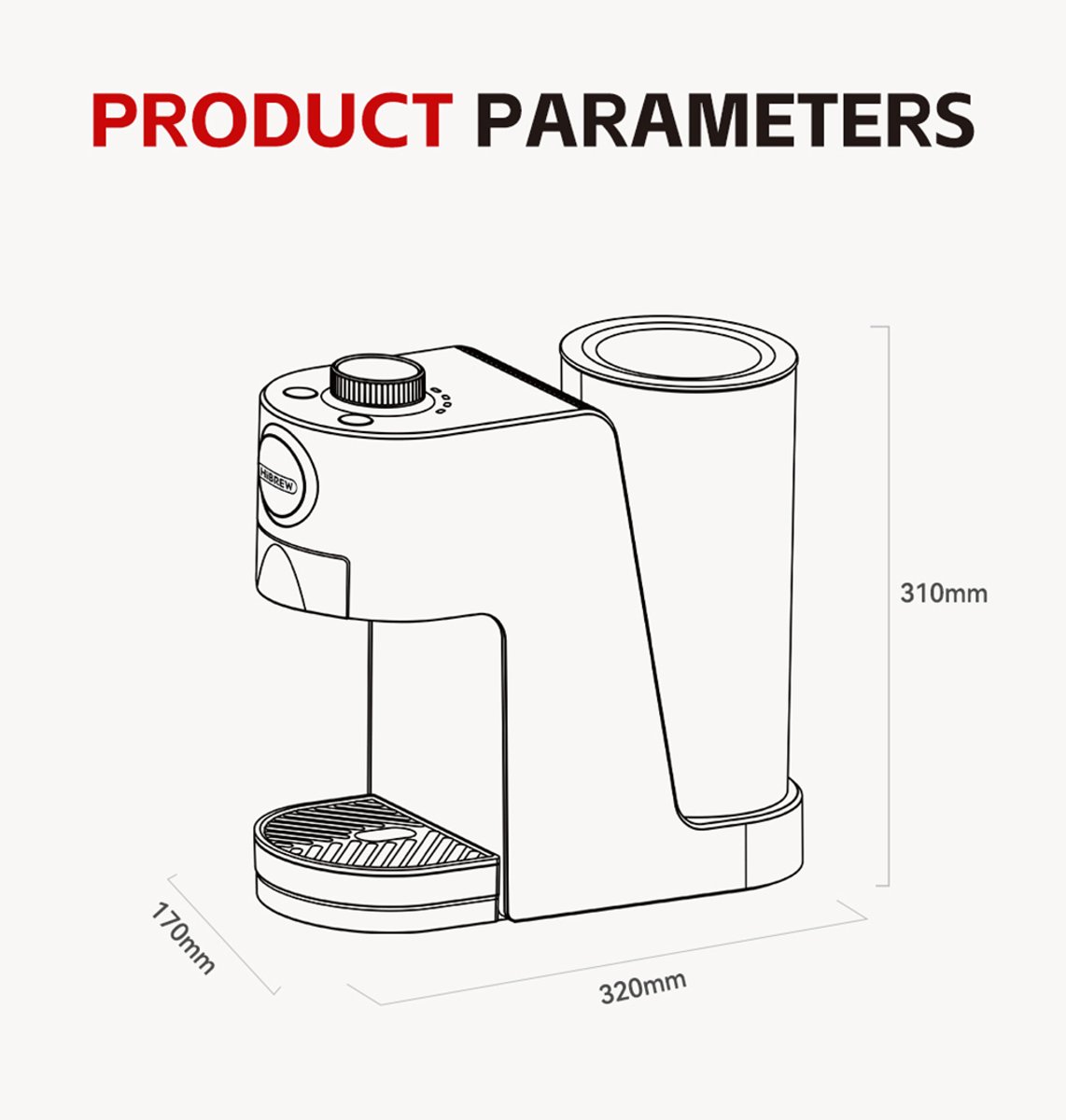 Met uitschuifbare lade, LED-indicatoren en vintage knop richt HiBREW zich op dagelijks gebruiksgemak. De aanraakpunten en bedieningselementen zijn minimaal, wat het eenvoudig maakt voor gebruikers die geen uitgebreide menu’s willen. Dit minimalistische design draagt bij aan snelle voorbereiding en installatie.