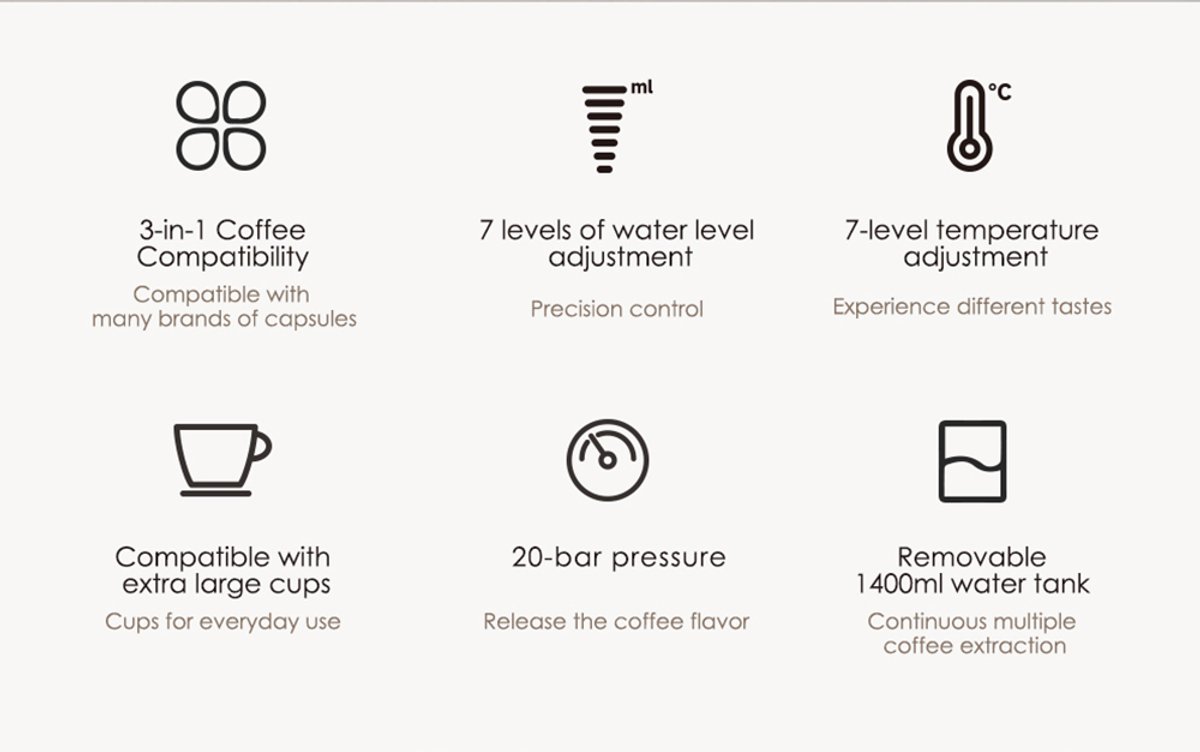 Compact formaat en uitneembare 1,4L watertank geschikt voor drukke huishoudens (bron: listing, gecontroleerd 2025) Wisselen tussen capsuletypes vereist soms extra schoonmaak en handmatige aanpassing