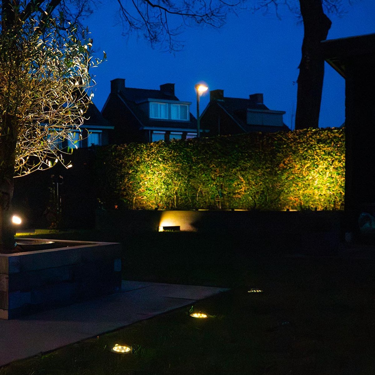 - Waarom het helpt: Accentverlichting. Je zet doelgericht planten, beelden of geveldetails in de spotlights zonder dat de hele tuin fel wordt. Richt de spots iets naar beneden voor padverlichting om verblinding te voorkomen.