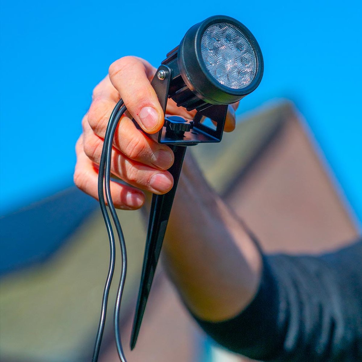 Voor padverlichting plaats je de spots om en om aan beide zijden van het pad, met een onderlinge afstand die het licht gelijkmatig spreidt. De gerichte bundel helpt om licht te focussen waar je het wilt. Richt de kop iets omlaag (indien verstelbaar; niet gespecificeerd) om verblinding te voorkomen. Bij het uitlichten van planten is het mooi om van voren én van opzij te belichten: zo ontstaat diepte en komen structuren beter uit. Bij een schutting of gevel geeft een hoek van 30–45 graden naar boven vaak het mooiste strijklicht.