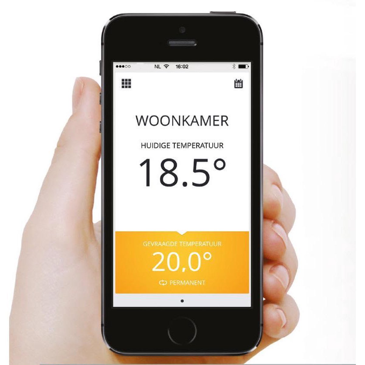 - Internet‑koppeling: de meegeleverde internet‑gateway verbindt de thermostaat met de app. Volg de stappen in de handleiding om de gateway met je netwerk te koppelen en de app in te stellen.