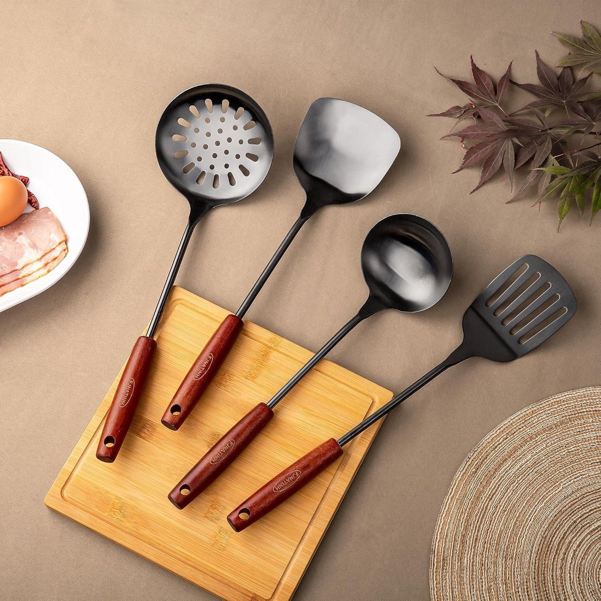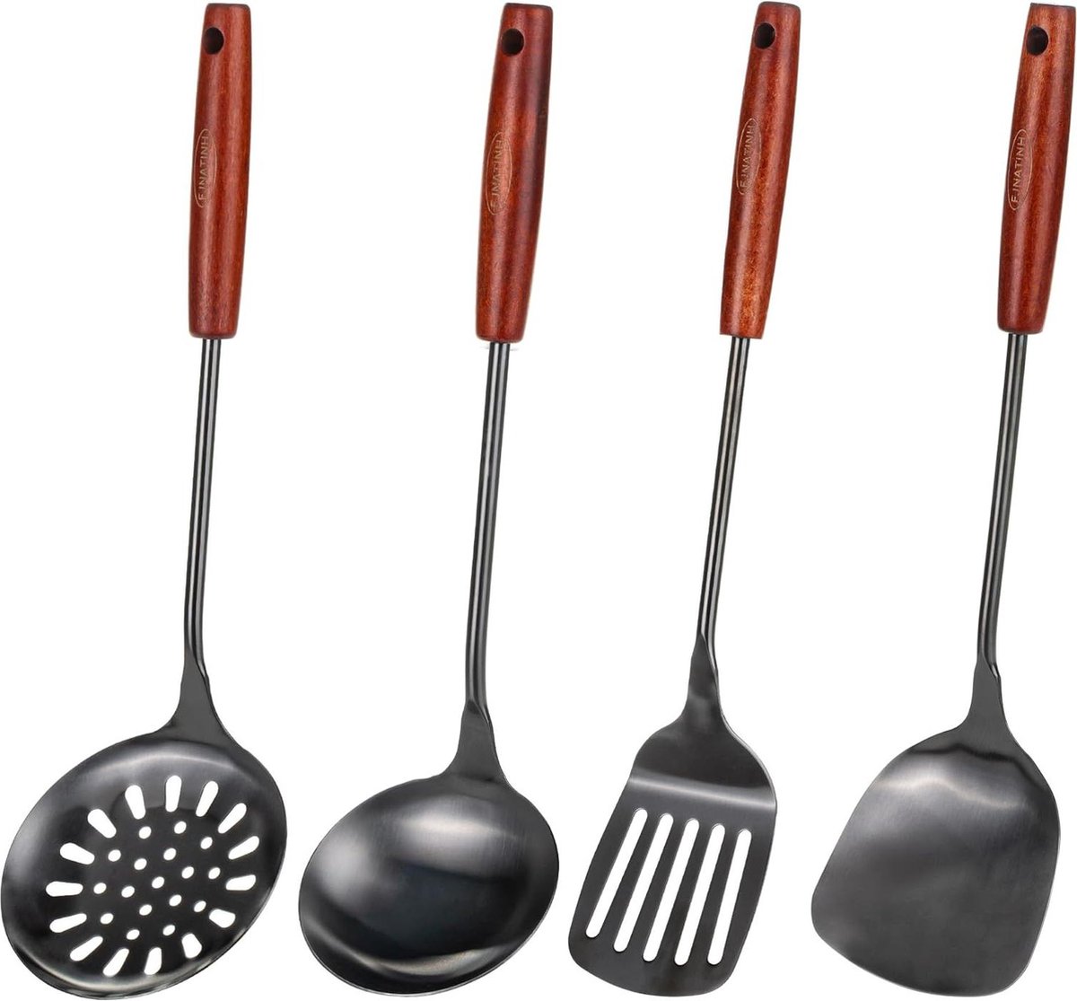 - Krijg veelzijdige hulpmiddelen met vier onderdelen: wokspatel, schuimspaan, pollepel, sleufspatel.