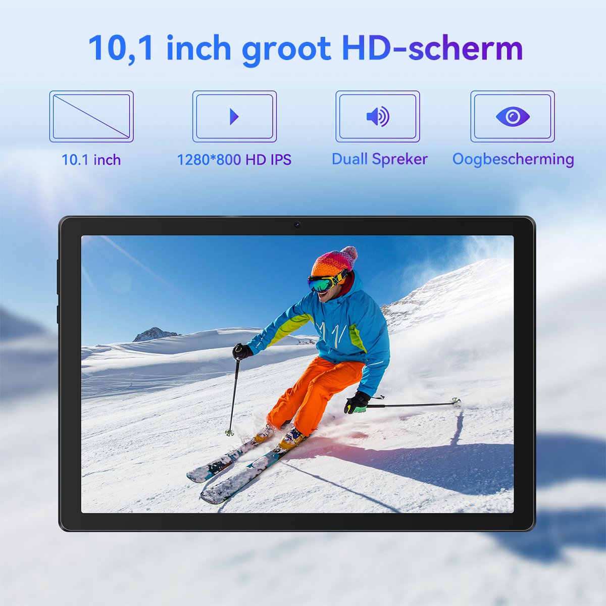 Overzicht:Deze 10-inch tablet met Android 14 is ideaal voor Nederlandse gebruikers die veelzijdige prestaties zoeken. Het 1280×800 HD-scherm en 64 GB opslag (uitbreidbaar tot 1 TB) bieden scherp beeld en voldoende ruimte voor media en documenten.