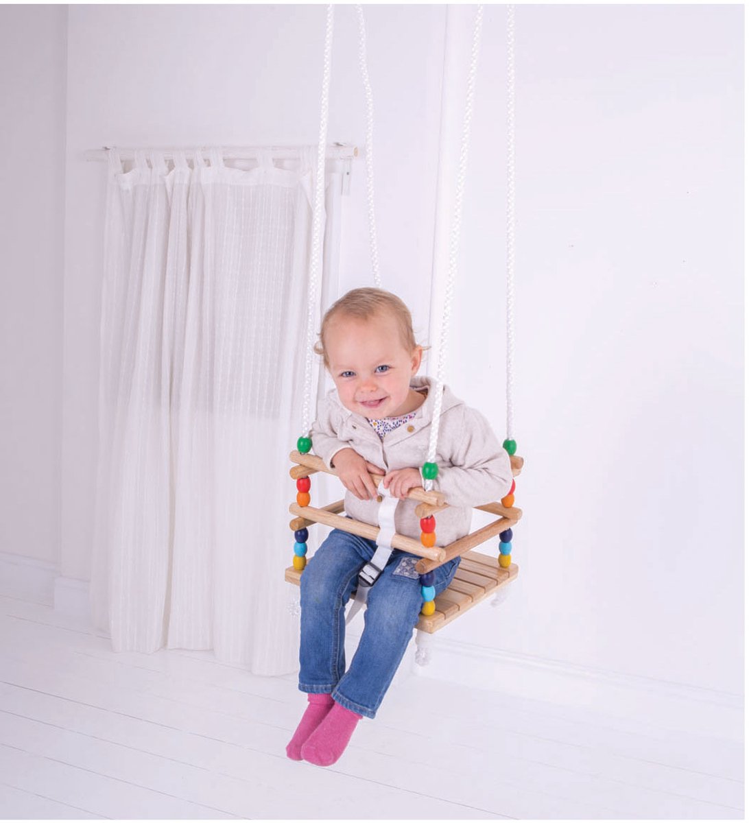 Deze schommel is gepresenteerd als een hoge kwaliteit schommel, bedoeld voor jonge kinderen. Volgens de listing is het een ideale keuze voor elk kind vanaf 12 maanden — geschikt voor binnens- of buitengebruik afhankelijk van jouw ophangmogelijkheden (source: listing, checked 2025).