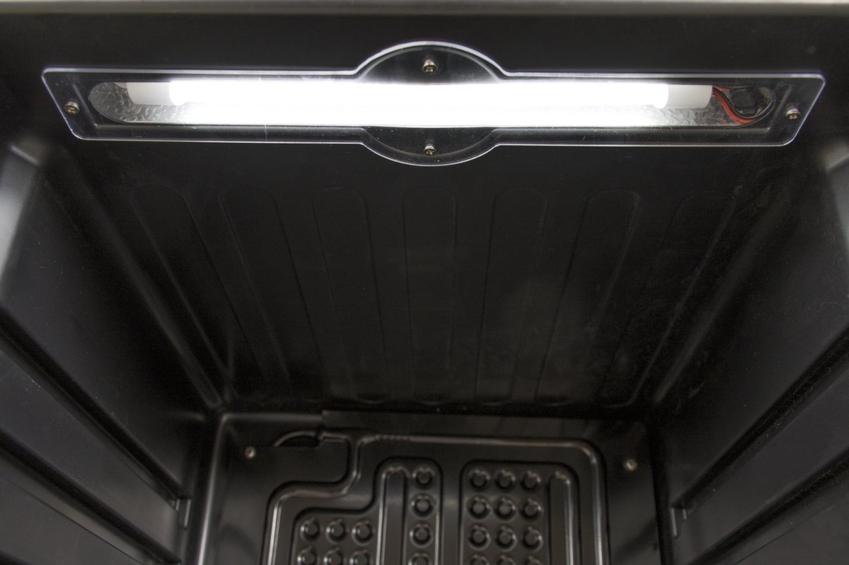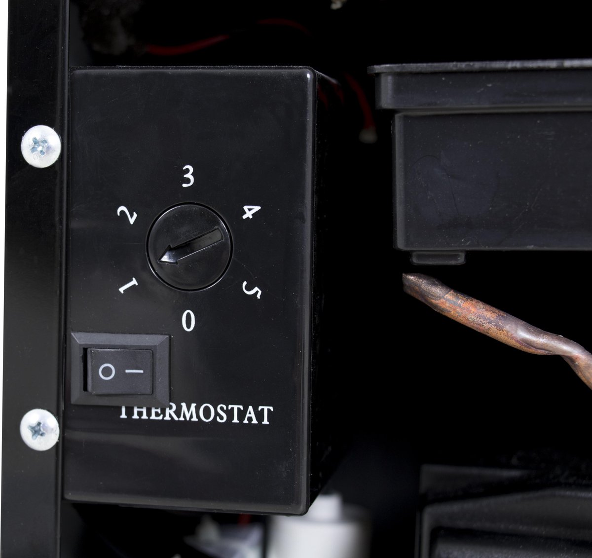 Deze flessenkoeler heeft LED-verlichting die je met een aparte schakelaar naast de thermostaat bedient. In de praktijk: