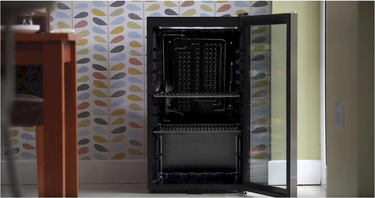 Hij oogt netjes en doet wat hij moet doen, maar hij houdt het niet altijd goed koel. Er zijn vijf standen; op stand 2 is de koelkast al vrij warm. Daarnaast sluit de deur aan de scharnierzijde niet helemaal, waardoor koude lucht ontsnapt.