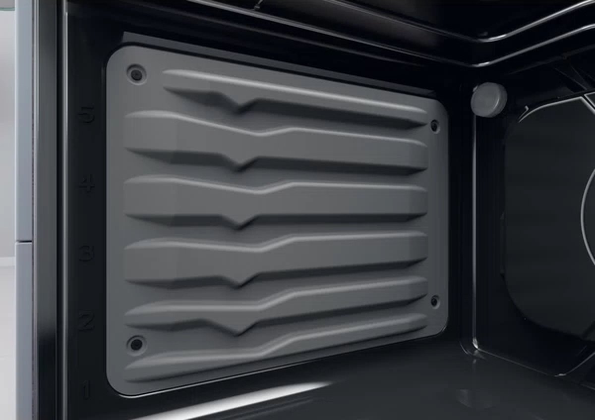 De oven is voorzien van katalytische zijpanelen. Tijdens het bakken worden vetdeeltjes geabsorbeerd en bij hogere temperaturen deels afgebroken. Na afloop wis je de resterende kruimels of aanslag simpel weg.
