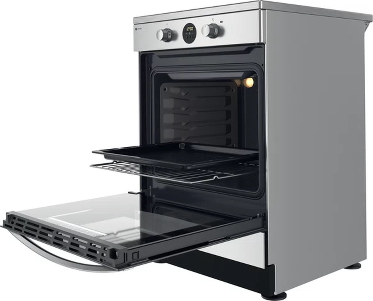 De Indesit IS67IQ8CCX/FR is een volledig elektrisch fornuis met vier inductiezones en een ruime oven van 69 liter. Het combineert snelle, precieze inductiekoken met een veelzijdige oven die tal van bak- en grillstanden biedt. Dankzij slimme schoonmaaktechnologie zoals Click&Clean en katalytische zijpanelen is het onderhoud opvallend eenvoudig.