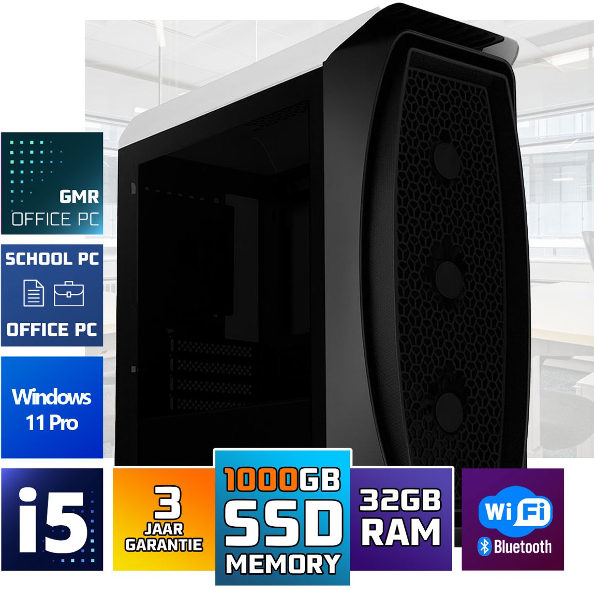 Deze Office PC is startklaar voor werk, studie en thuiswerken in Nederland. U sluit hem aan en kunt direct productief aan de slag. Met 32 GB RAM blijft alles soepel, van kantoorapplicaties tot online vergaderen.