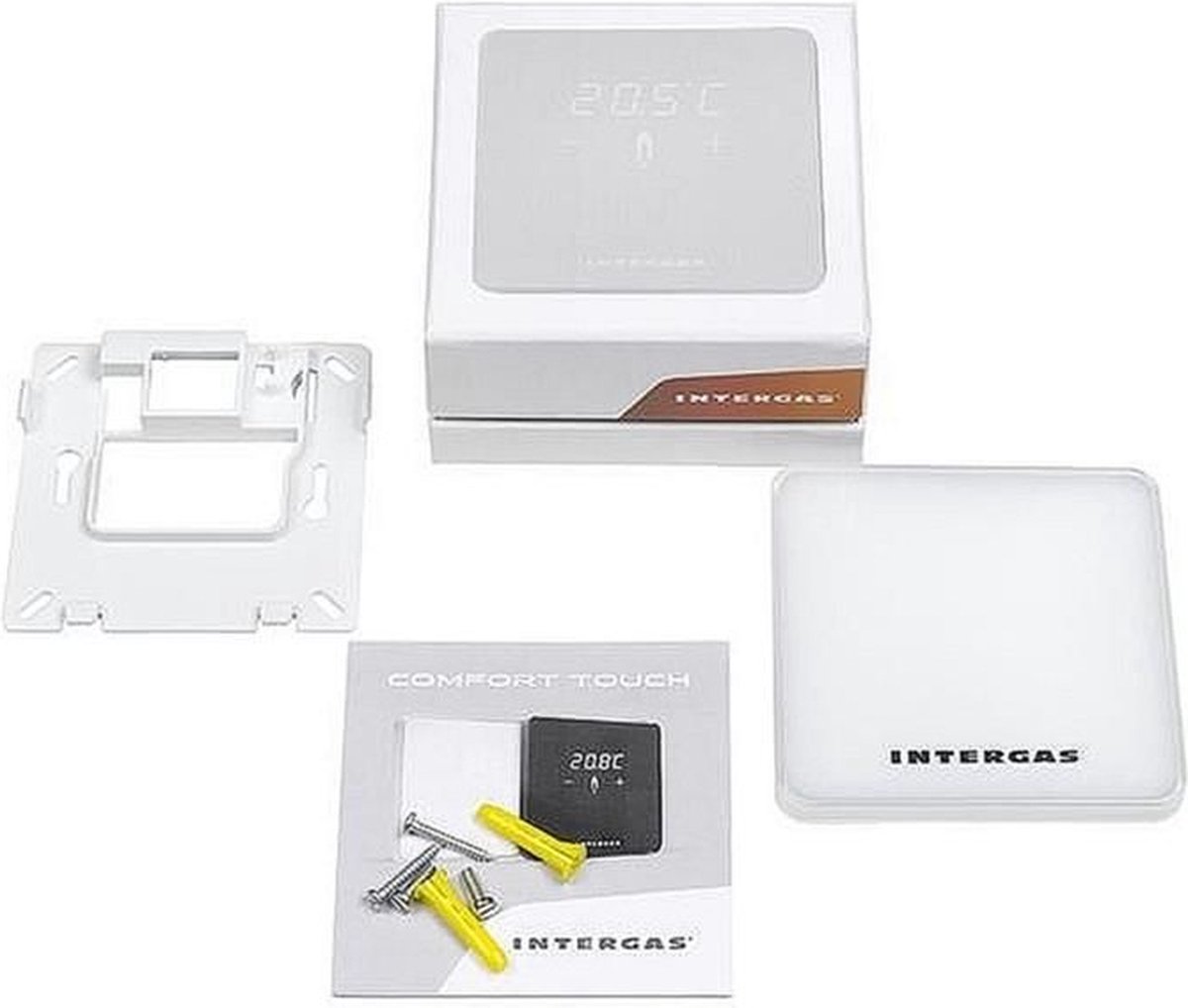 - Intergas Comfort Touch kamerthermostaat (witte uitvoering; ook verkrijgbaar in zwart volgens de fabrikant)