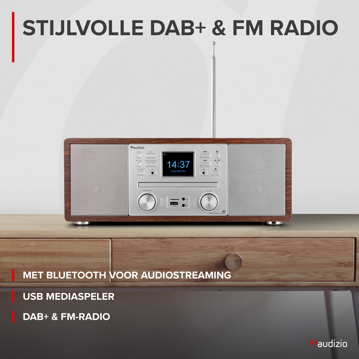 Voordeel: storingsvrije digitale ontvangst met betere geluidskwaliteit dan vaak bij FM.