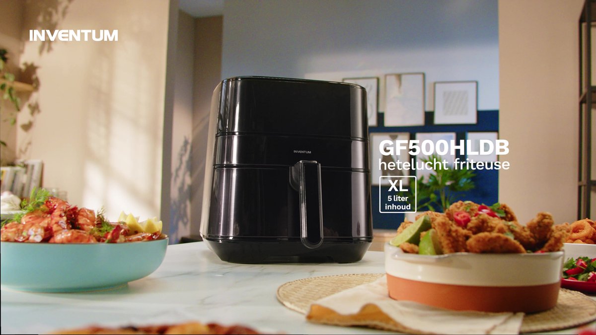 De Inventum GF500HLD is een hetelucht friteuse voor Nederlandse keukens die gezonder willen frituren met minimale olie. Met 5 liter inhoud bak je per keer tot 1000 gram frites, en hij is bekroond als Beste Koop door de Consumentenbond.