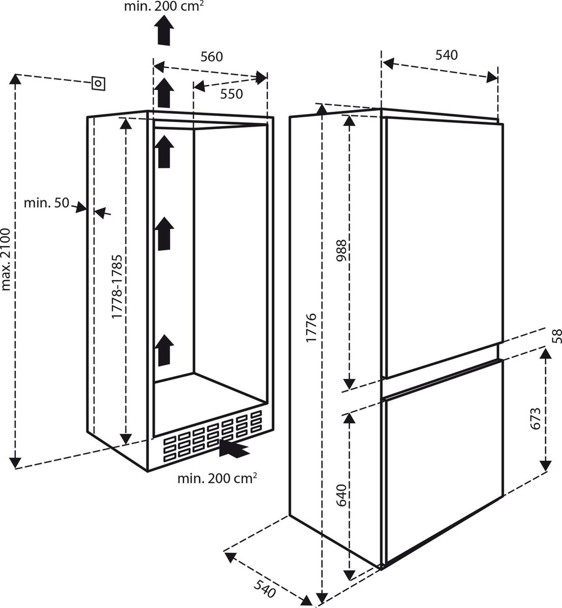 • Je een inbouw koelkast zoekt voor nismaat 178 cm met een praktische, variabele indeling.