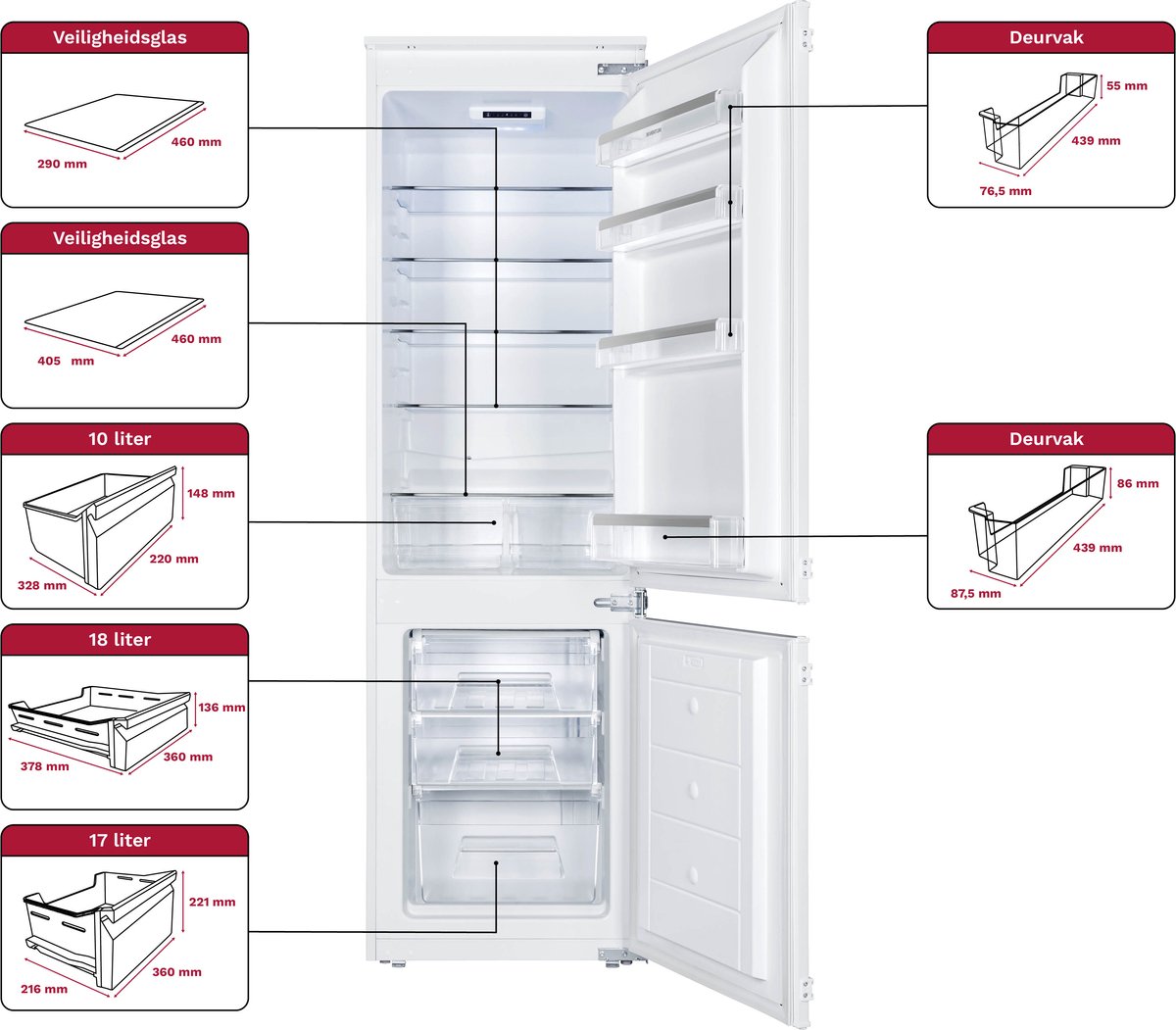 Overzicht:De Inventum IKV1782S is een inbouwkoelkast met apart vriesgedeelte voor Nederlandse huishoudens die veel vers en ingevroren bewaren. De flexibele indeling houdt alles overzichtelijk en makkelijk bereikbaar. Met 242 liter inhoud berg je weekboodschappen moeiteloos op.