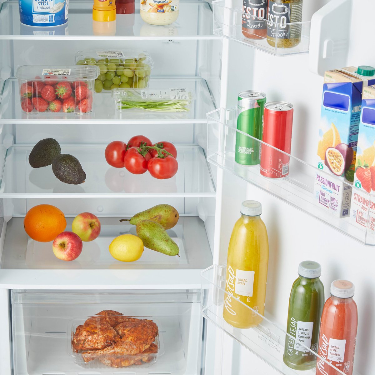 De Inventum KK1850W is een hoog, vrijstaand model met een royale inhoud. De hoogte levert praktische voordelen op: je krijgt veel bruikbare plankruimte en een ruime groentezone, zonder dat de koeler onnodig diep of breed hoeft te zijn. Dat maakt hem geschikt voor gezinnen of iedereen die graag groot inslaat en veel overzicht wil.