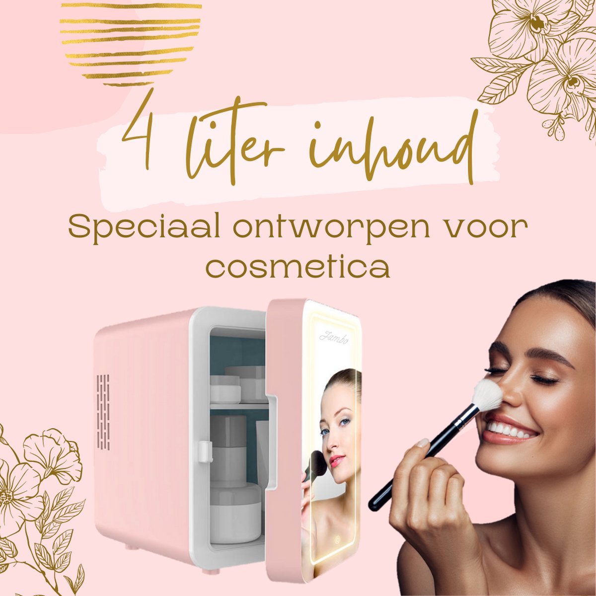 Overzicht:De Jambo® Skincare Koeler is een compacte mini-koelkast met spiegelverlichting die jouw make-up en huidverzorging langer vers houdt. Ideaal voor Nederlandse gebruikers die bacteriegroei willen beperken en verspilling voorkomen; met 4 liter inhoud past verrassend veel.