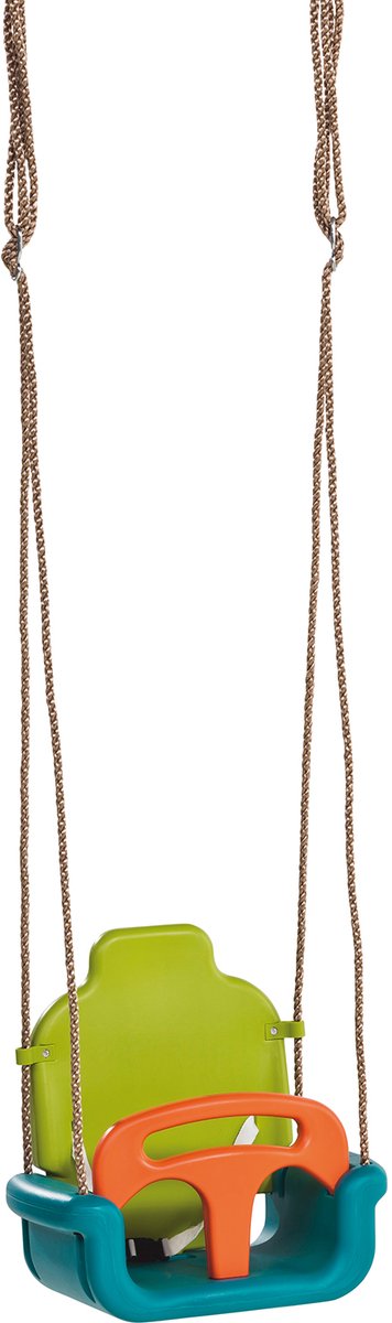 Dit verstelbare babyzitje is ontworpen om met uw kind mee te groeien: van een veilige babyschommel voor de allerkleinsten tot een eenvoudig zitje voor oudere kinderen. Het kunststof zitje bestaat uit demonteerbare onderdelen en biedt extra nekondersteuning dankzij de hoge rugleuning. Materialen zijn blaasgegoten HDPE en gegalvaniseerd staal voor de ophangringen en stelachten.