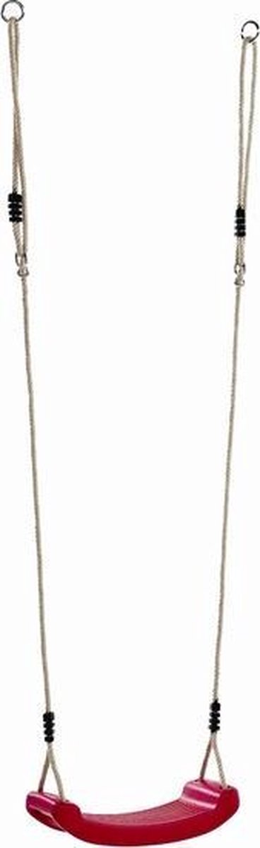Een ruime schommel van stevig kunststof. Pluspunten: juiste afmetingen en eenvoudig op te zetten.