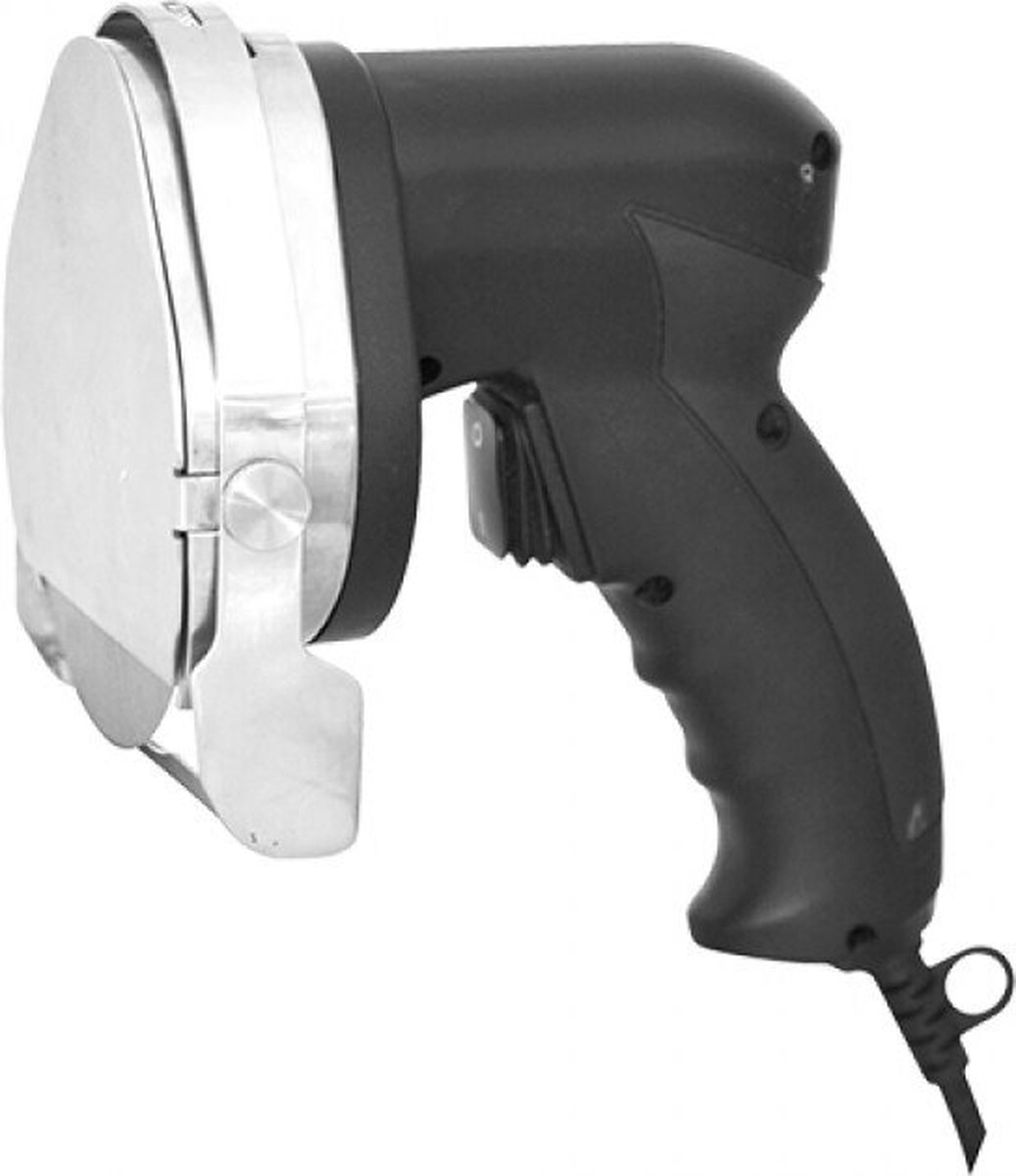 Dit is een snijinstrument voor gegrild vlees waarmee je kebab, gyros en döner gelijkmatig en op de gewenste dikte kunt snijden. De snijdikte is instelbaar en het mes is voorzien van een beschermplaat van roestvrij staal. Daarmee richt het product zich op iedereen die snel, veilig en consistent plakken vlees wil snijden, of je nu een drukke keuken runt of thuis graag met een spit werkt.
