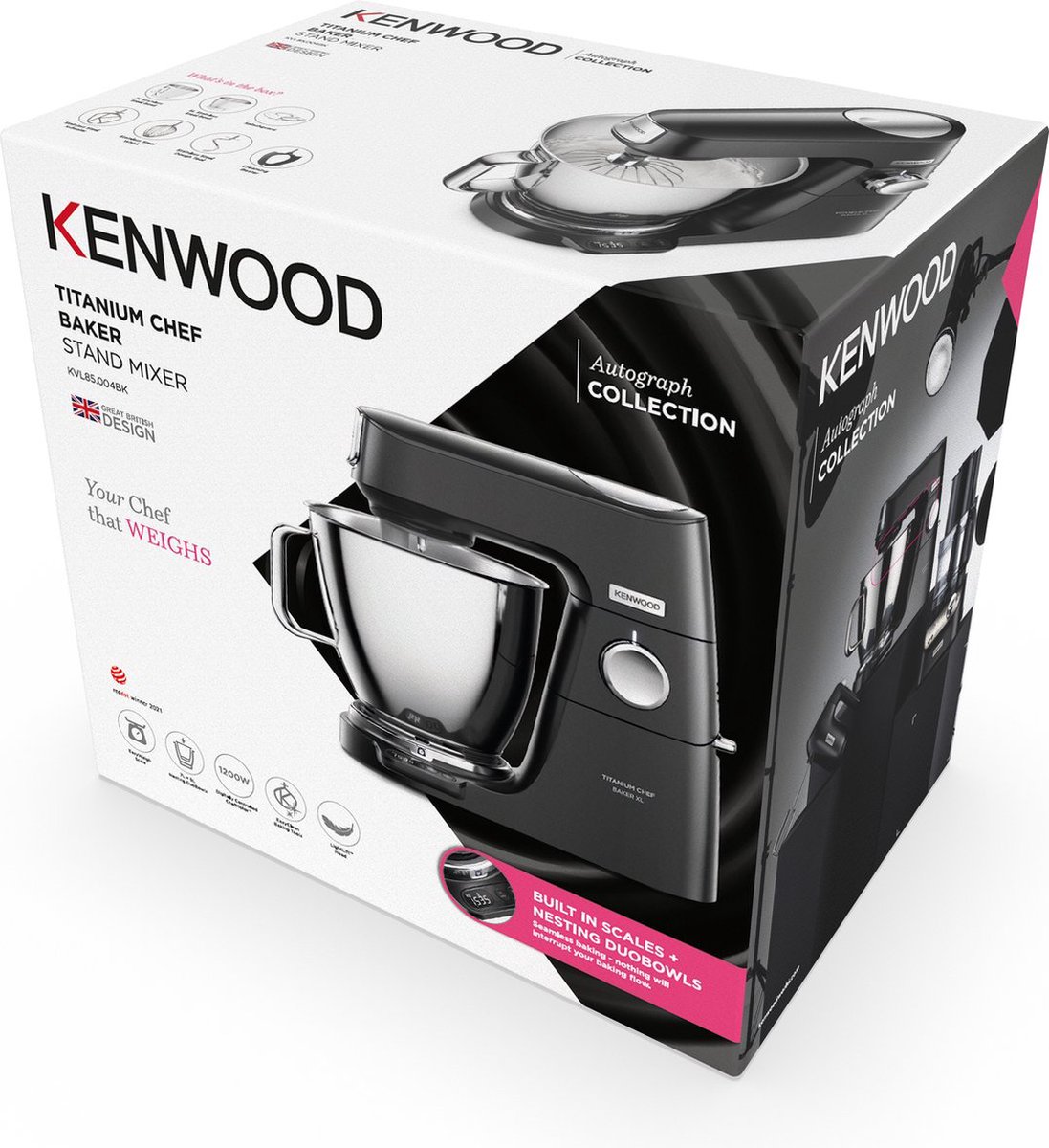 De Kenwood Chef Titanium Baker KVC85.004BK is een krachtige, veelzijdige keukenmachine voor thuisbakkers die waarde hechten aan precisie en gemak. Dankzij de ingebouwde weegschaal, twee bijgeleverde kommen en een reeks robuuste roestvrijstalen hulpstukken is dit een machine die je zowel tijd bespaart als je bakresultaten naar een hoger niveau tilt.