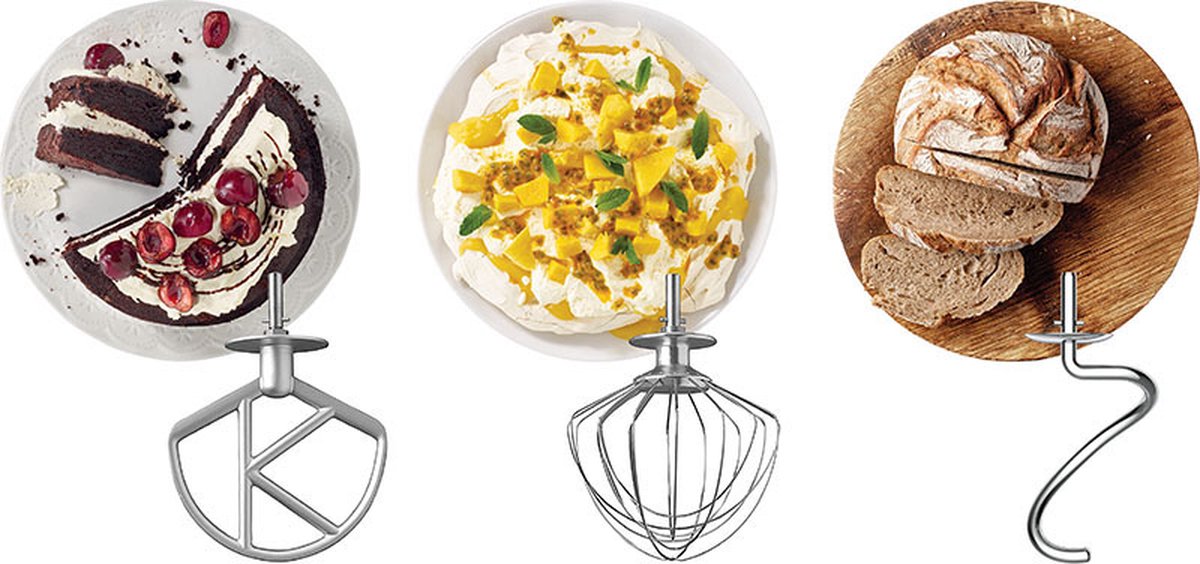 | Drie stevige baktools inbegrepen: K‑klopper, garde, deeghaak | Geen extra opzetstukken meegeleverd; uitbreiden betekent apart aanschaffen |