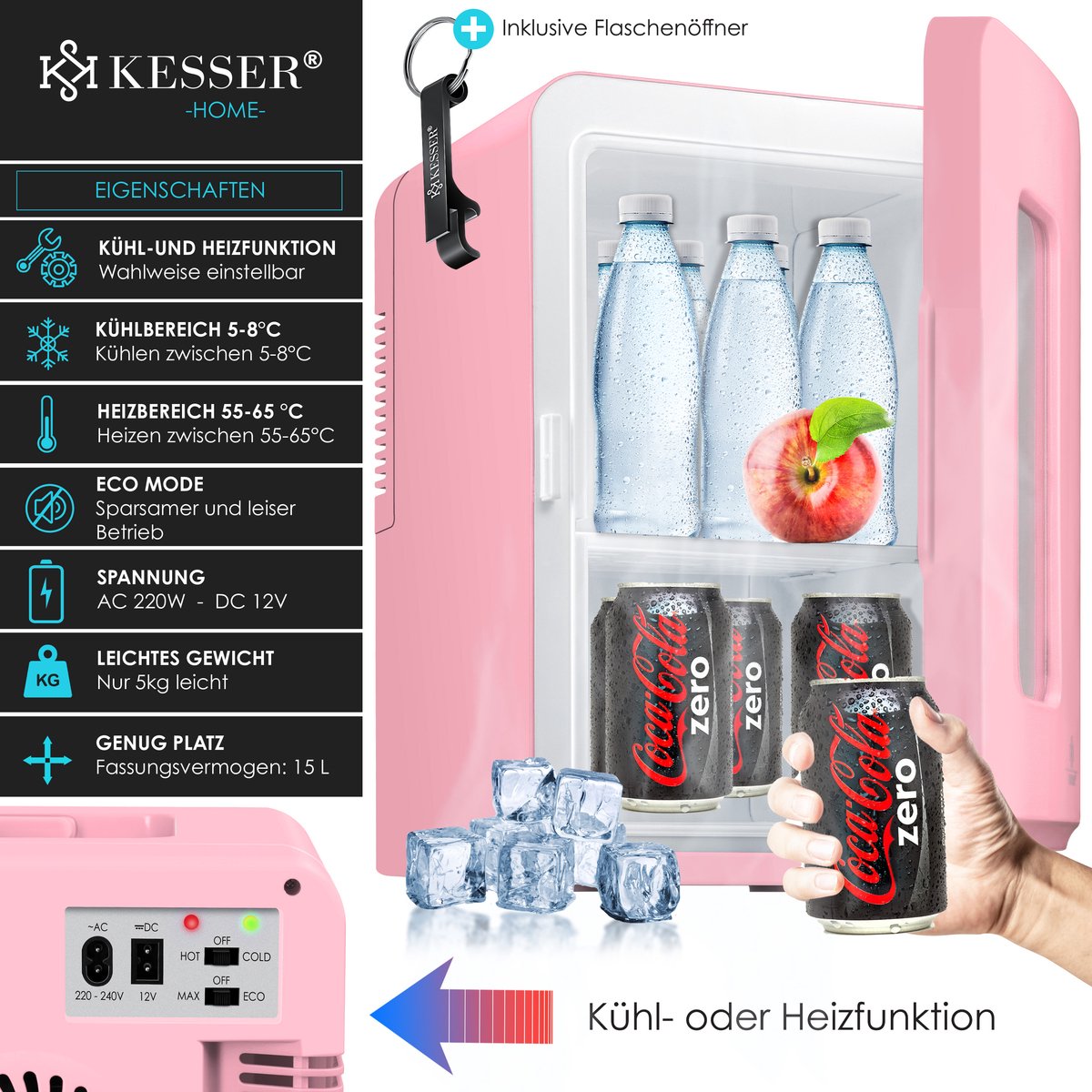 De KESSER mini koelkast 15 liter is een compacte 2‑in‑1 koelbox met koel- en verwarmingsfunctie voor thuis, kantoor, auto en kamperen. Dankzij het thermo-elektrische systeem werkt hij stil en energiezuinig, zonder compressor of koelmiddel. Met 12V voor onderweg en netstroom voor binnen is dit een flexibele oplossing voor drankjes, snacks of cosmetica.