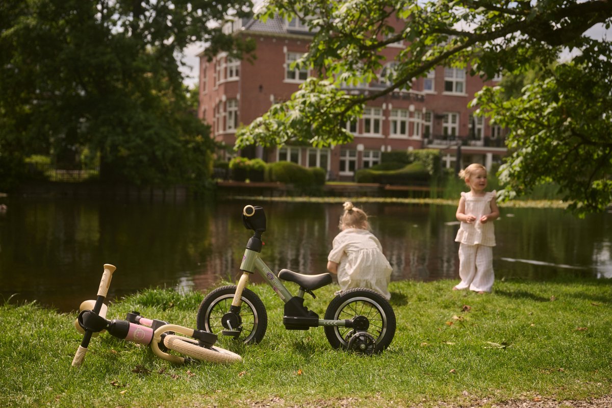 • Overgang naar pedalen: door de klikpedalen en zijwieltjes toe te voegen ontstaat een stabiele eerste trapervaring zonder ingewikkelde ombouwen.