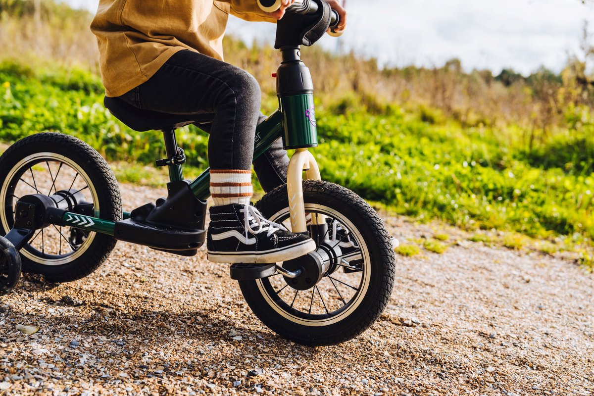 Voordeel: één fiets, drie gebruiksmodi (balanceren, steppen met zijwieltjes, trappen met pedalen).