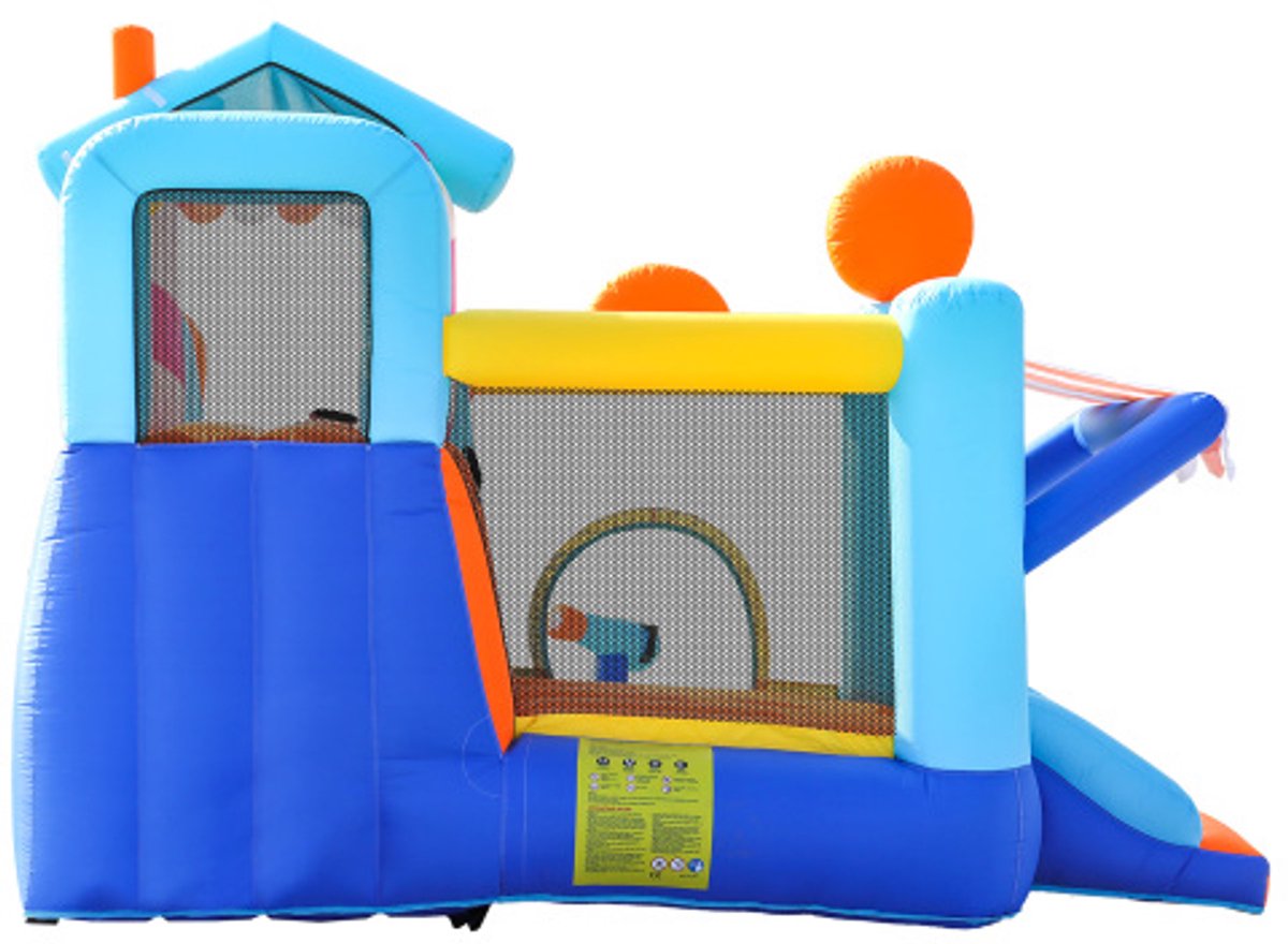 Een blower van 450 W wordt meegeleverd, zodat u het springkussen in enkele minuten kunt opblazen. Dit versnelt installatie en maakt het product geschikt voor ouders die geen ingewikkelde montage willen.