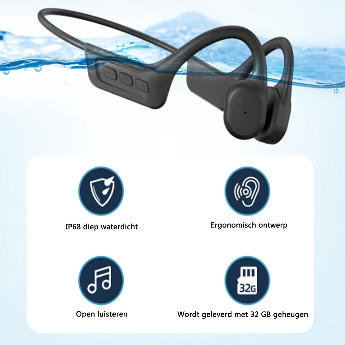 Overzicht:De IPX8 Waterdichte Zwemhoofdtelefoon met botgeleidingstechnologie is perfect voor Nederlandse sporters die veilig willen luisteren tijdens zwemmen en buitentraining. Gemaakt van lichtgewicht ABS-materiaal voor comfortabel dragen, ook met badmuts of zwembril.