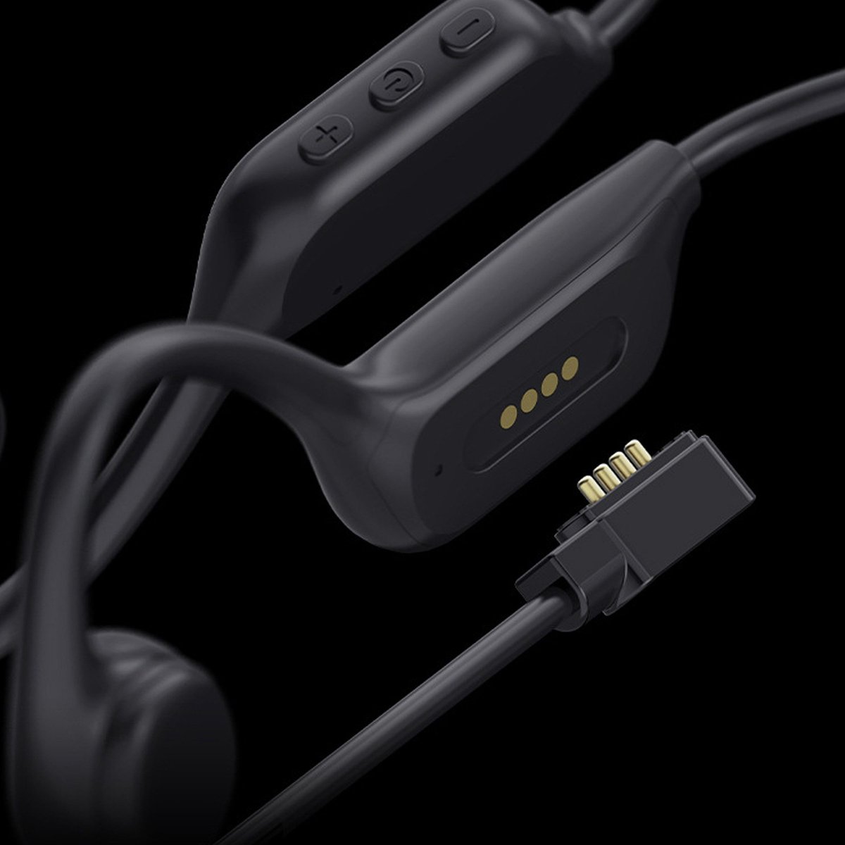 De behuizing is gemaakt van ABS-materiaal, wat zorgt voor een licht gewicht en robuuste afwerking. Dat maakt de headset nauwelijks voelbaar tijdens intensieve trainingen en handig te combineren met badmuts en zwembril. Omdat de unit rond de slapen en achter het oor rust en geen in-ear doppen heeft, blijft je gehoorgang vrij — een groot voordeel voor veiligheid in het verkeer en comfort tijdens lange sessies.