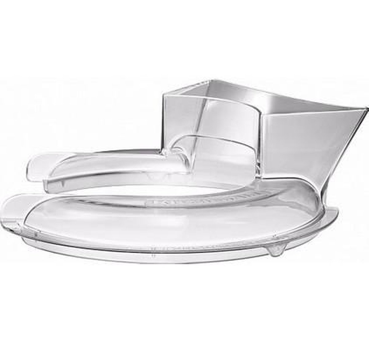Het transparante, eendelige schenkschild helpt bij het toevoegen van ingrediënten zonder te knoeien en houdt zicht op het mengproces (bron: listing, gecontroleerd 2025). Handig bij het langzaam toevoegen van bloem, poedersuiker of gesmolten boter: je voegt toe terwijl alles netjes in de kom blijft.