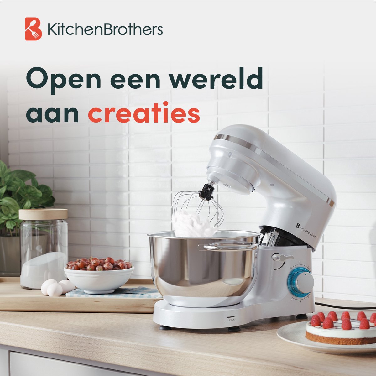 Zoek je een krachtige, gebruiksvriendelijke keukenpartner voor deeg, beslag en slagroom? De KitchenBrothers Keukenmachine met 6,2 liter RVS-kom en 2000 watt motor is een allrounder die kneedt, klopt en mengt met overtuiging. Dankzij de kantelbare kop, spatscherm met vulopening en drie meegeleverde opzetstukken werk je schoon, snel en gevarieerd.