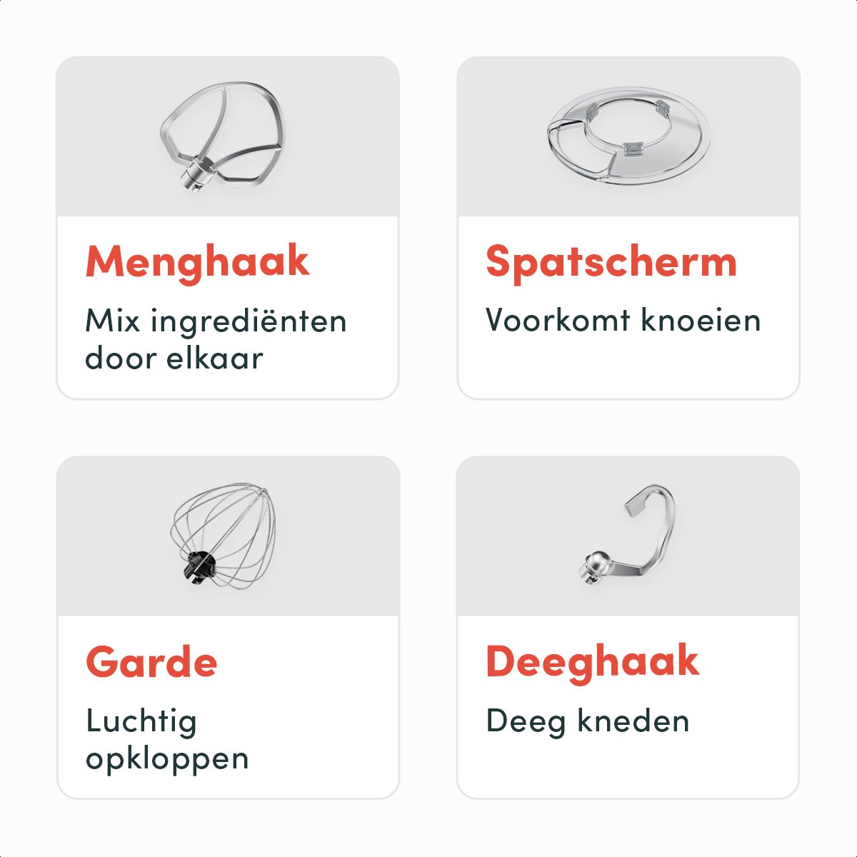 - Deeghaak: voor brood-, pizza- en ander gistdeeg.